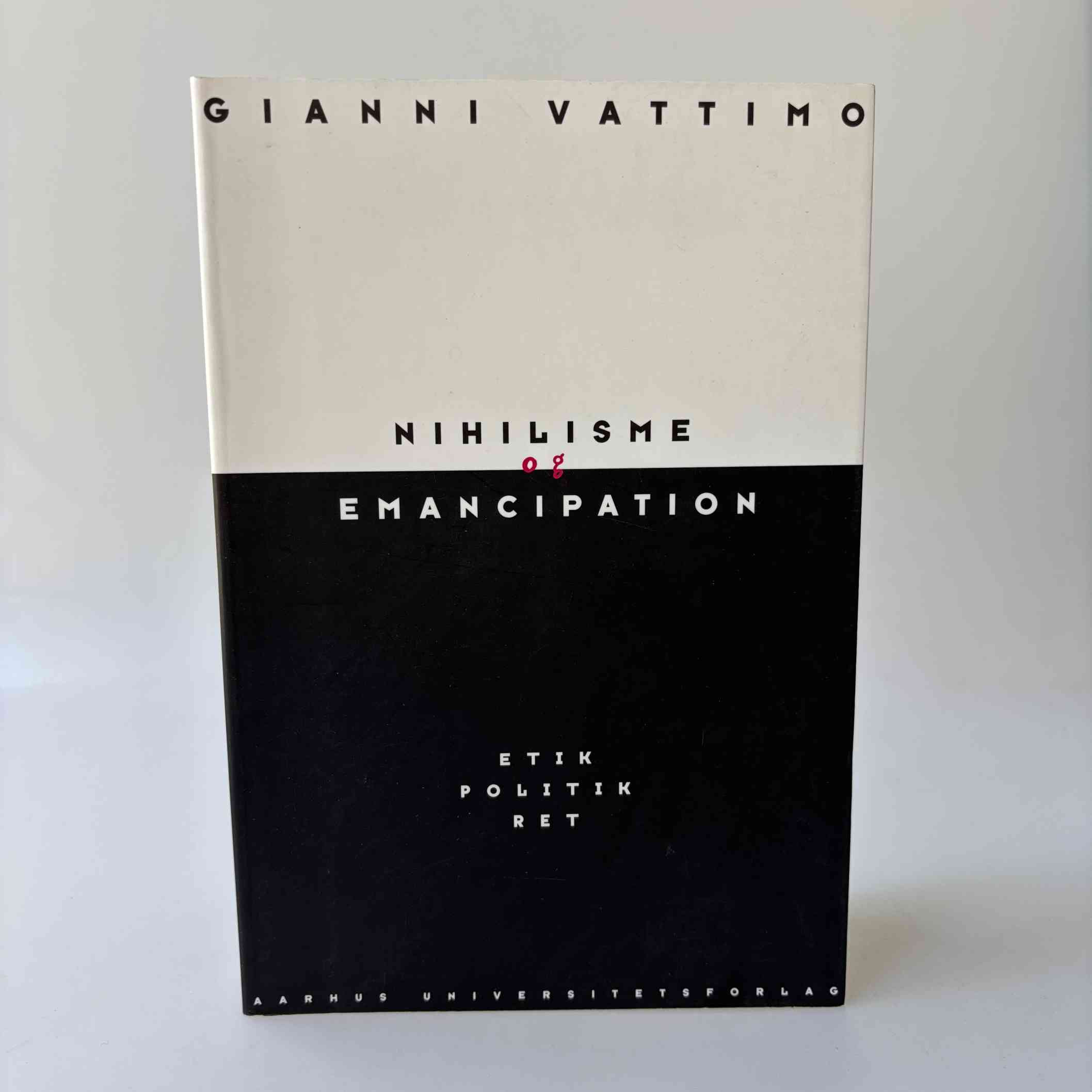 I Nihilisme og emancipation forsøger Gianni Vattimo at gentænke begreberne politik, etik og ret i den moderne verden, hvor uforanderlige principper er utænkelige. Nietzsche og Heidegger har efterladt sig et metafysisk tomrum, hvor Gud er død, og de absolutte ideologier er utroværdige. Udfordringen for nutidens filosoffer bliver derfor at opspore en teori omkring “det moderne”, som bygger på hermeneutikkens uendelige fortolkningsmuligheder.Lov, ret og etik må konstrueres igennem forhandlinger, demokrati og konsensus. Kun således undgås den polarisering, som truer med at opdele verden i supermarkedskulturen på den ene side og fundametalismen på den anden.Med Vattimos politisk-filosofiske tilgang konfronteres flere brandaktuelle temaer i bogen, bl.a. kulturernes herkomst, Occidentens undergang og Europas rolle i fremtidens verdenssamfund.Bogen indeholder, ud over en udførlig bibliografi, en introduktion til Gianni Vattimos tænkning ved idéhistoriker Jens Viggo Nielsen.